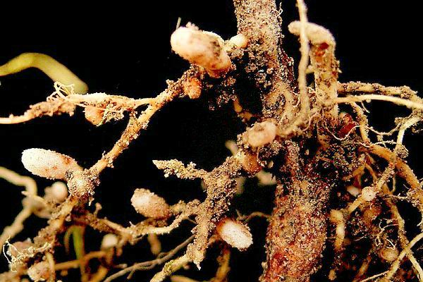 Nitrogen-fixing Bacteria Rhizobium Nodules on Soybean Roots